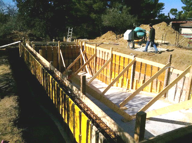 Réalisation d’une piscine de 11 x 4 avec volet roulant, finition enduit de couleur