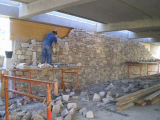 grandes surfaces de parement en pierres bâties appareillées à joints secs